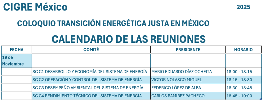 Coloquio de los Comités de Estudio CIGRE México - 19 Noviembre